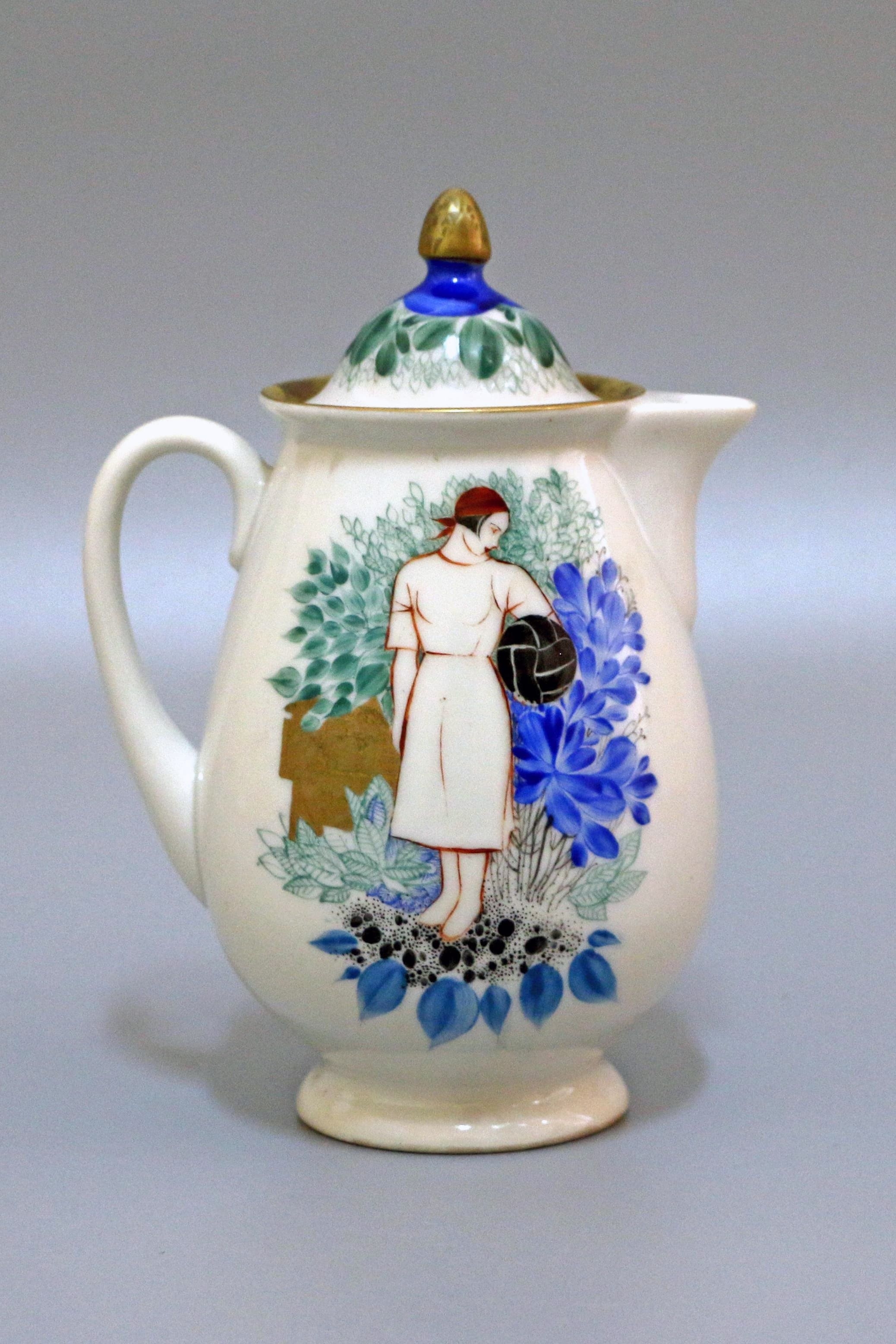Молочник из сервиза “Физкультурницы”. Автор формы С.В. Чехонин, автор росписи Л.К. Блак, 1934, Государственный фарфоровый завод им. М.В. Ломоносова