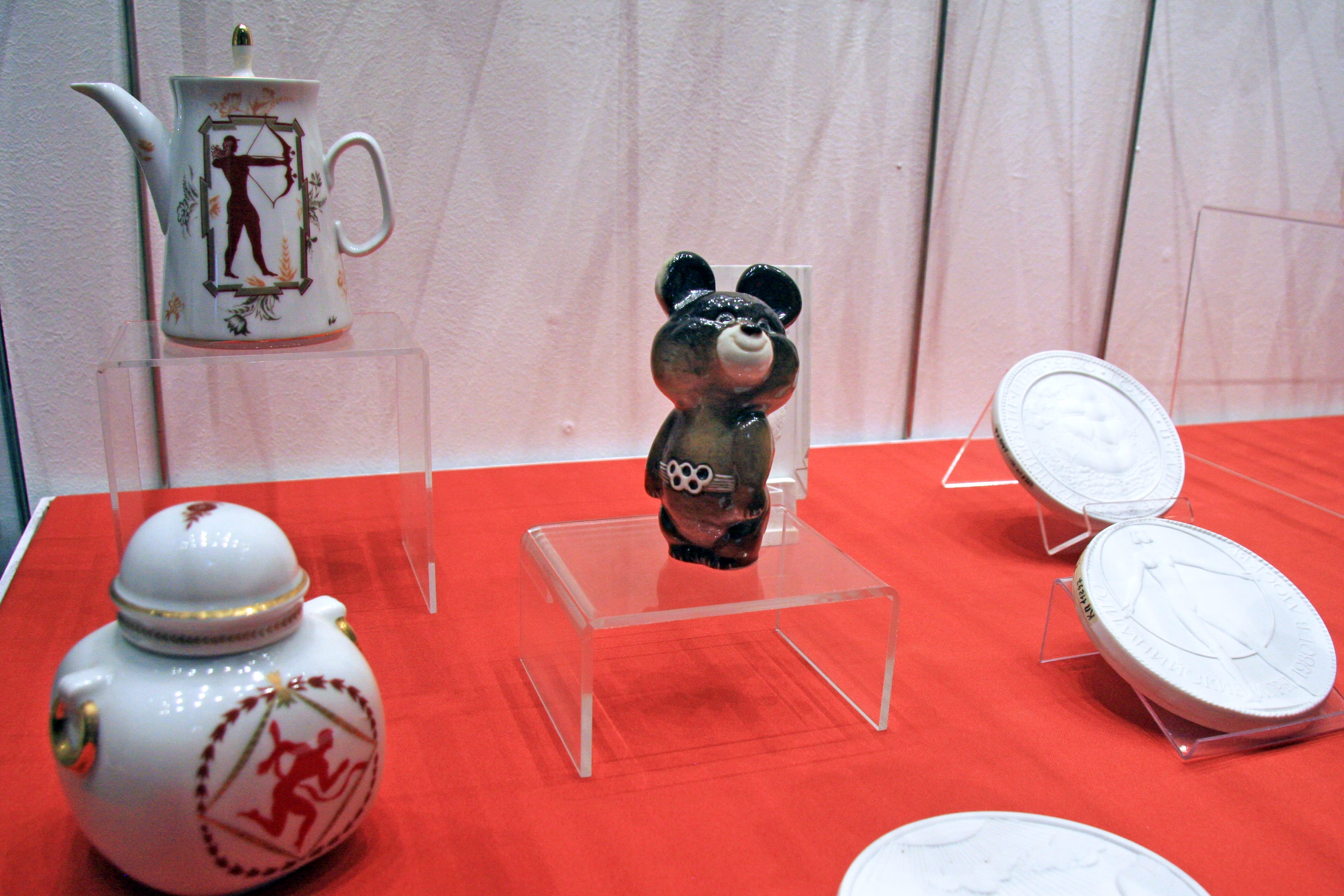 Фигуру талисмана Олимпиады-80 медвежонка Миши, созданного художником Виктором Чижиковым, в разных вариантах выпустили Ленинградский, Прокопьевский, Владивостокский фарфоровые заводы, Конаковский фаянсовый завод им. М. И. Калинина, Полонский завод художественной керамики, и другие. Большинство предприятий специально к Олимпийским играм разработали разнообразную сувенирную продукцию (чайные пары, декоративные тарелки, скульптуру и многое другое), декорированную олимпийской символикой, для гостей столицы.
