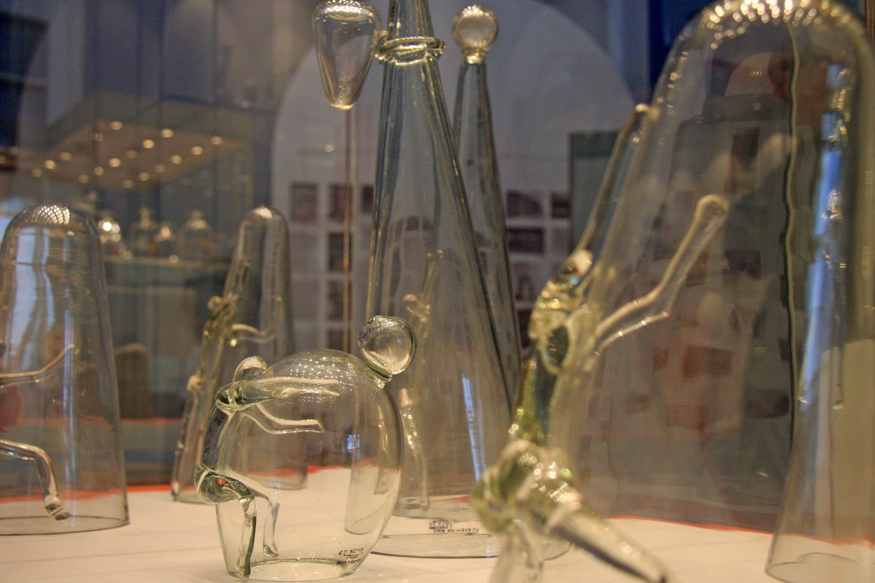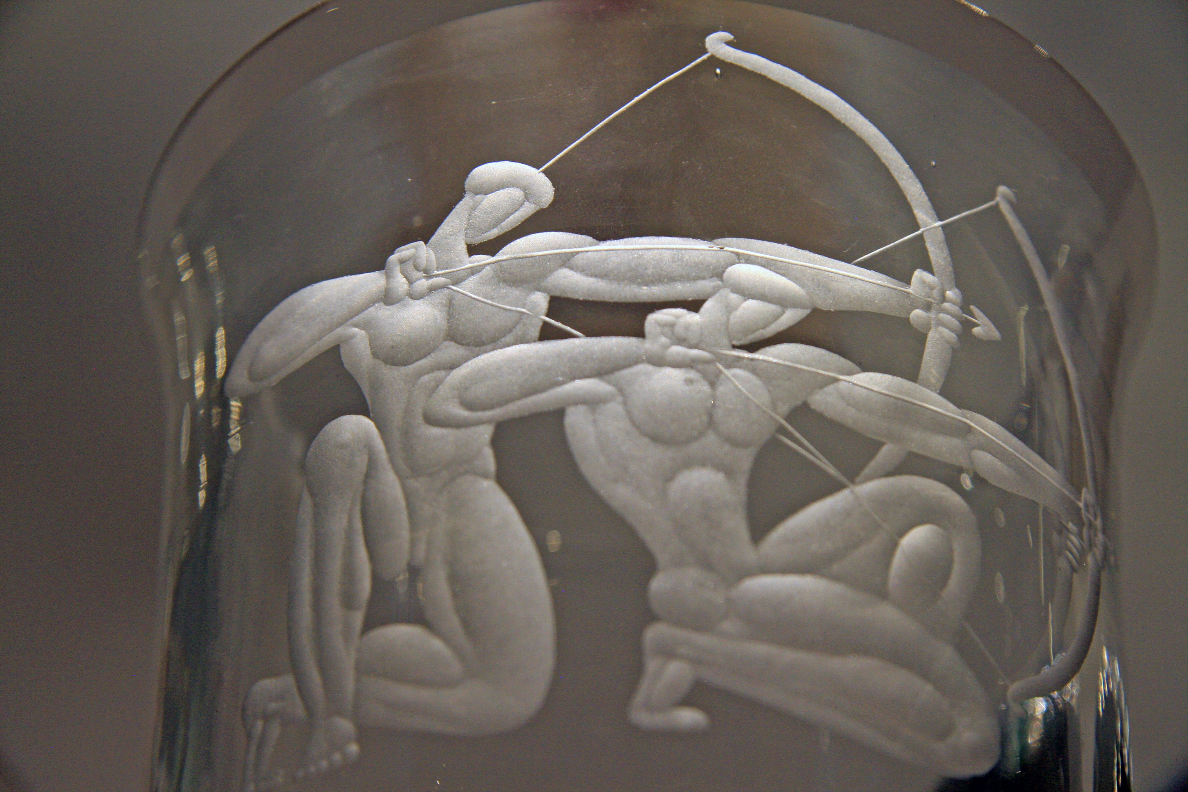 Выдающийся художник-экспериментатор широкого творческого диапазона Борис Смирнов (1903-1986) создал новую эстетику советского авторского стекла в послевоенное время. В качестве ключевой художественной задачи он выделял “тематичность”, стремясь отразить ее в любимом материале совсем иначе, по-новому. Декоративные композиции “Баскетбол” и “Хоккеисты” являются примером того, как сюжетная сцена дробится и возникает на нескольких прозрачных объемах, соединяясь в единый ансамбль. Предметные формы населяются действием за счет лепных или написанных фигур, олицетворяющих театральную сцену.