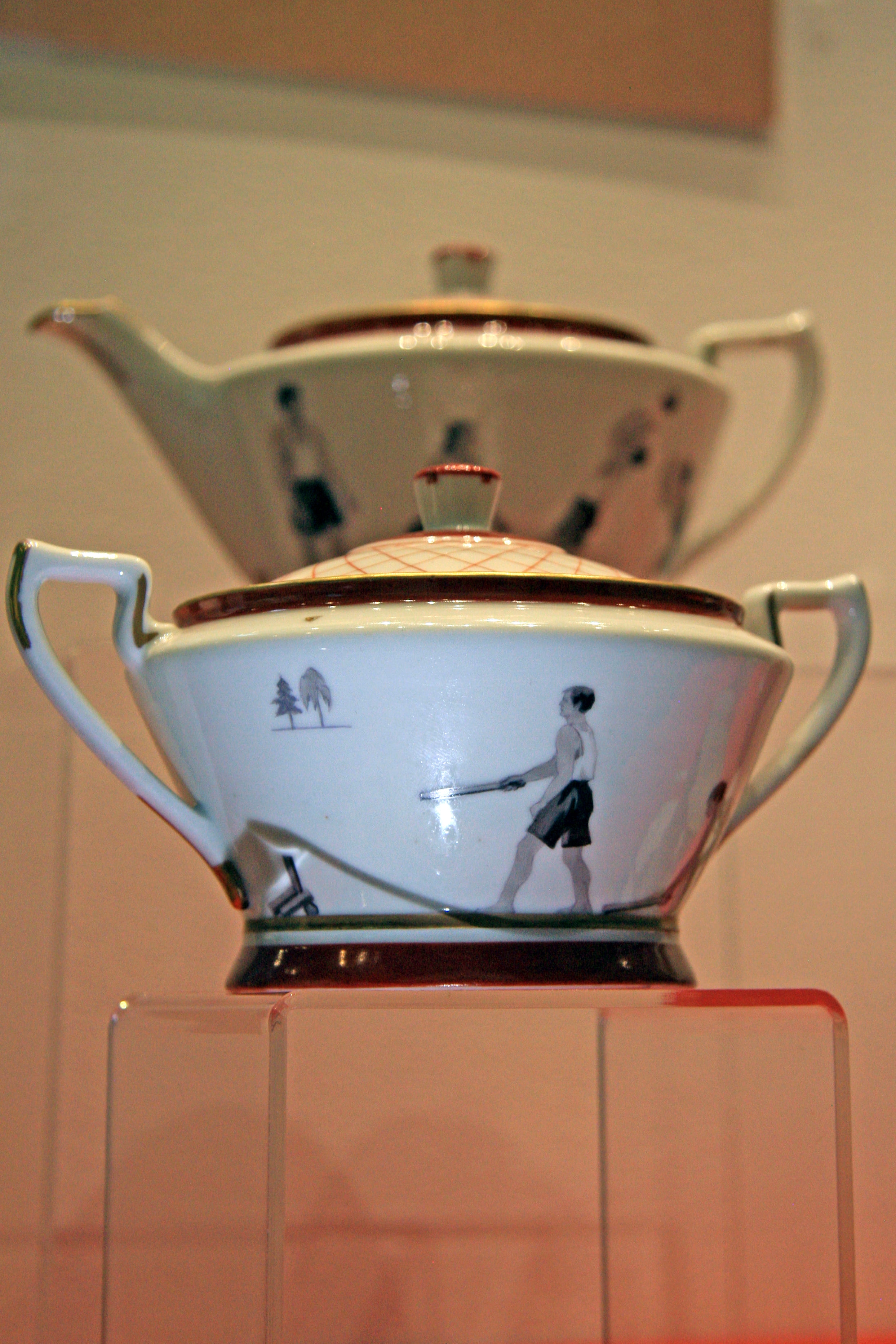 Предметы из сервиза «Физкультурники» («Физкультура и отдых»). Т. Подрябинников, 1934, Дмитровская фарфоровая фабрика