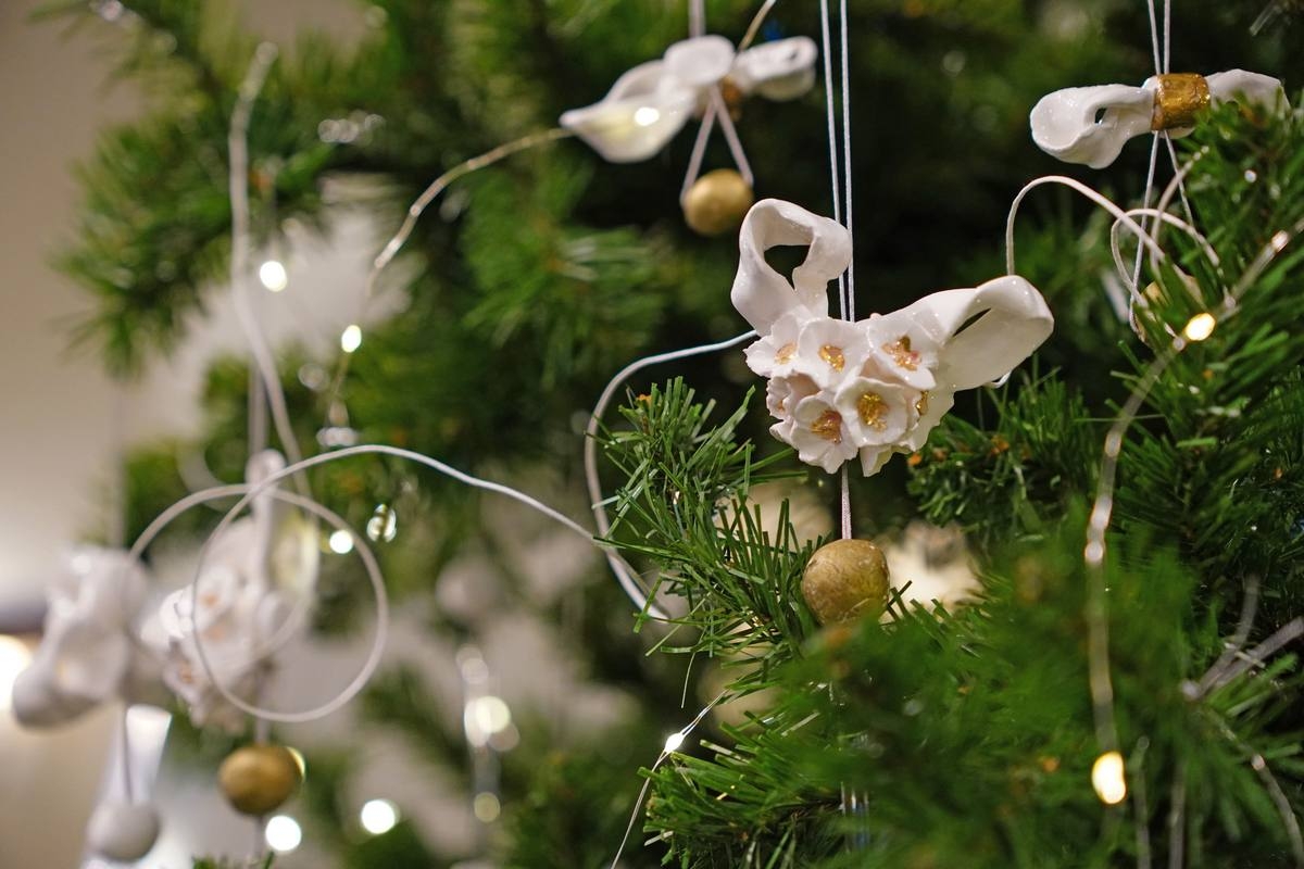 Примечательно, что я лепила украшения в основном в вечернее время. Дело в том, что обычно я леплю из шликера — жидкого фарфора, который имеет одну особенность: сначала он очень подвижный, а потом резко застывает. И у меня было буквально несколько секунд для того, чтобы сформировать сам бант и слепить цветы. Поэтому я лепила в вечернее время, чтобы не отвлекаться ни на что. Один раз я работала целую ночь в порыве вдохновения, и очнулась только когда зазвенел утренний будильник. Произошло своего рода рождественское чудо: в петербургскую ночь родились десятки фарфоровых украшений. Это был словно подарок небес мне, как творцу.
